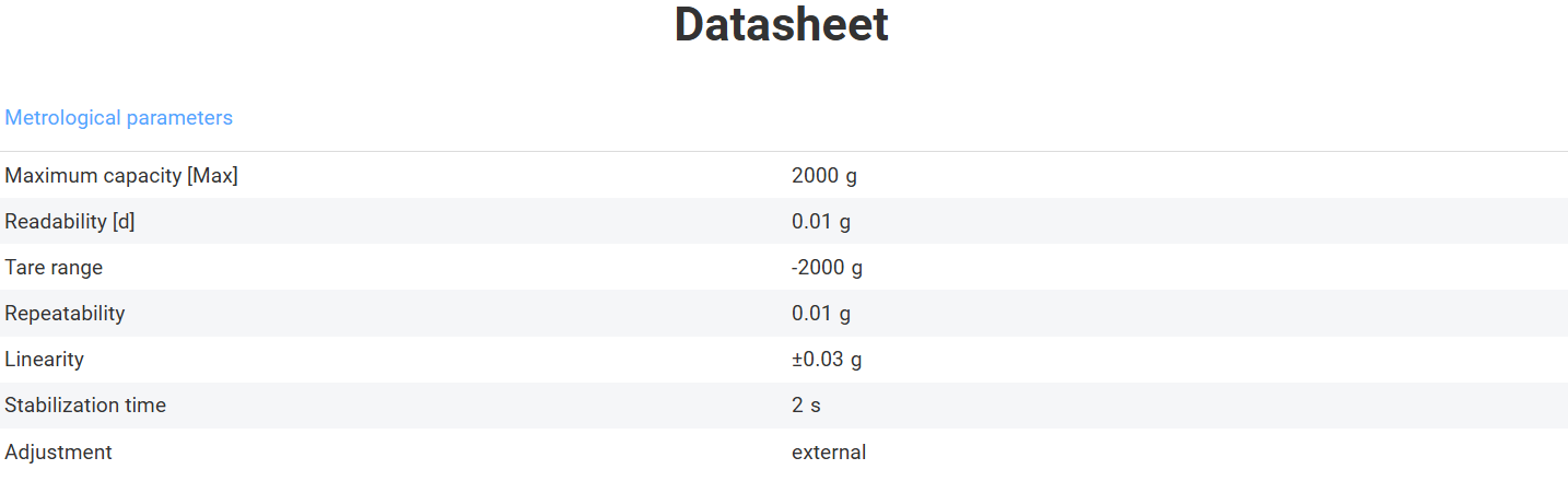Maximum capacity [Max]: 2000g Readability [d]: 0.01g